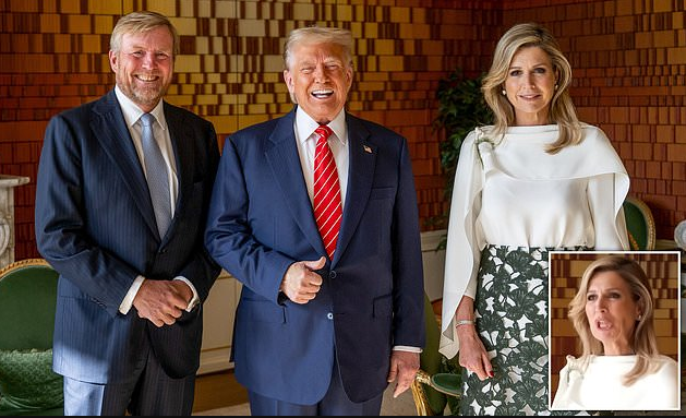 Trump traveled to the Netherlands this week to attend the annual NATO meeting, which took place on June 24–25. As part of his diplomatic visit, he stopped by Huis ten Bosch Palace to meet with King Willem-Alexander and Queen Máxima. The trio posed for photos during the president’s visit, with Trump smiling broadly and offering a trademark thumbs-up gesture to the cameras.
